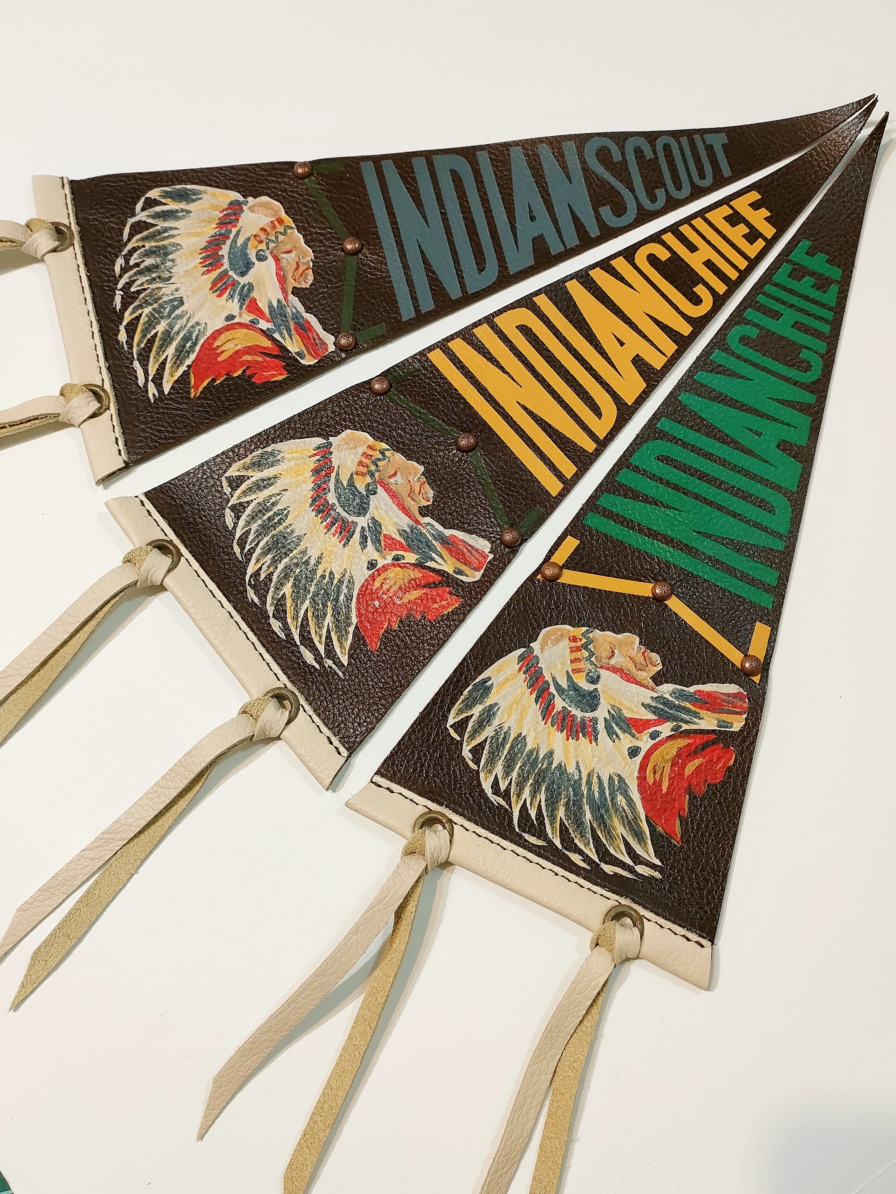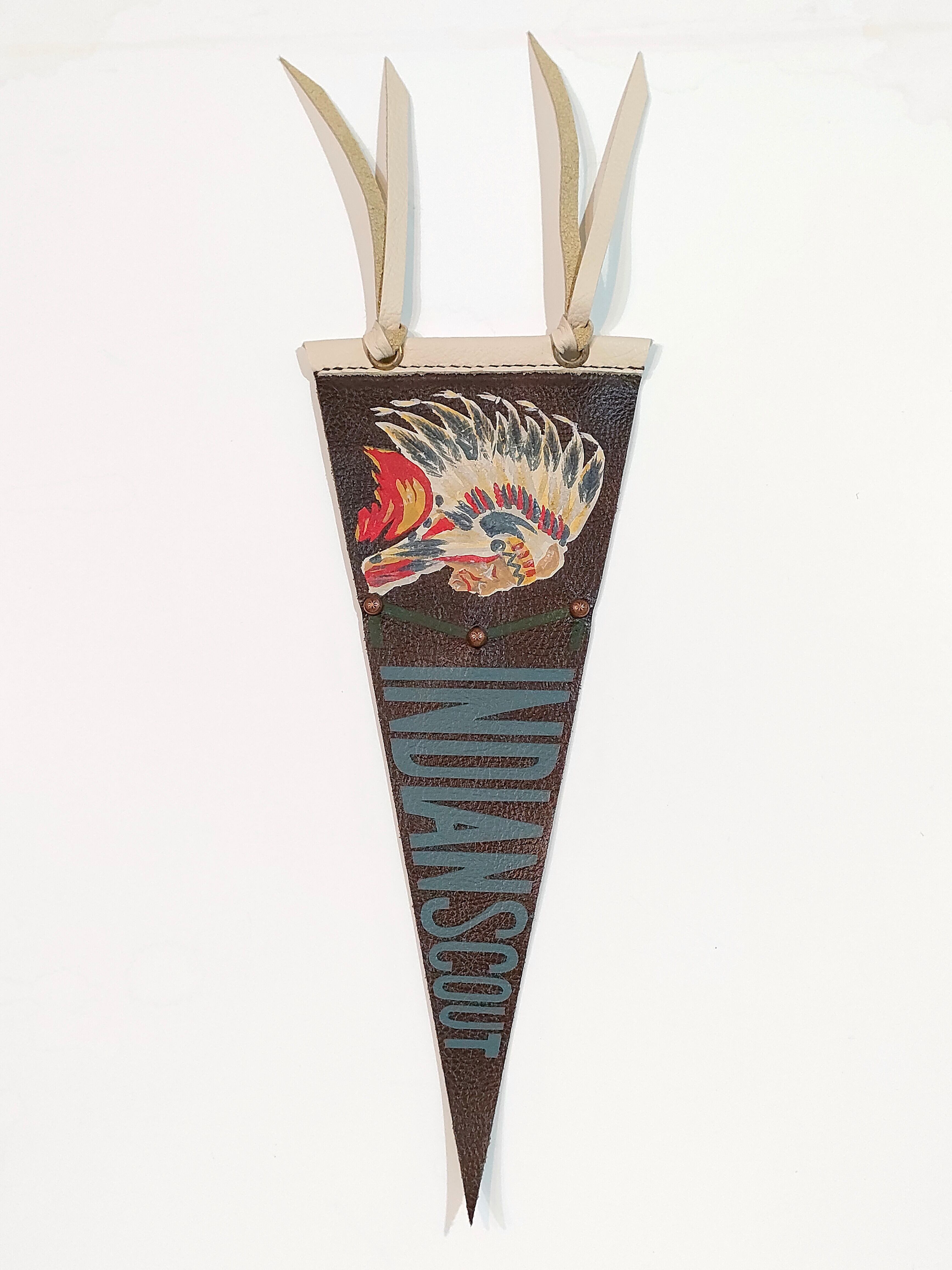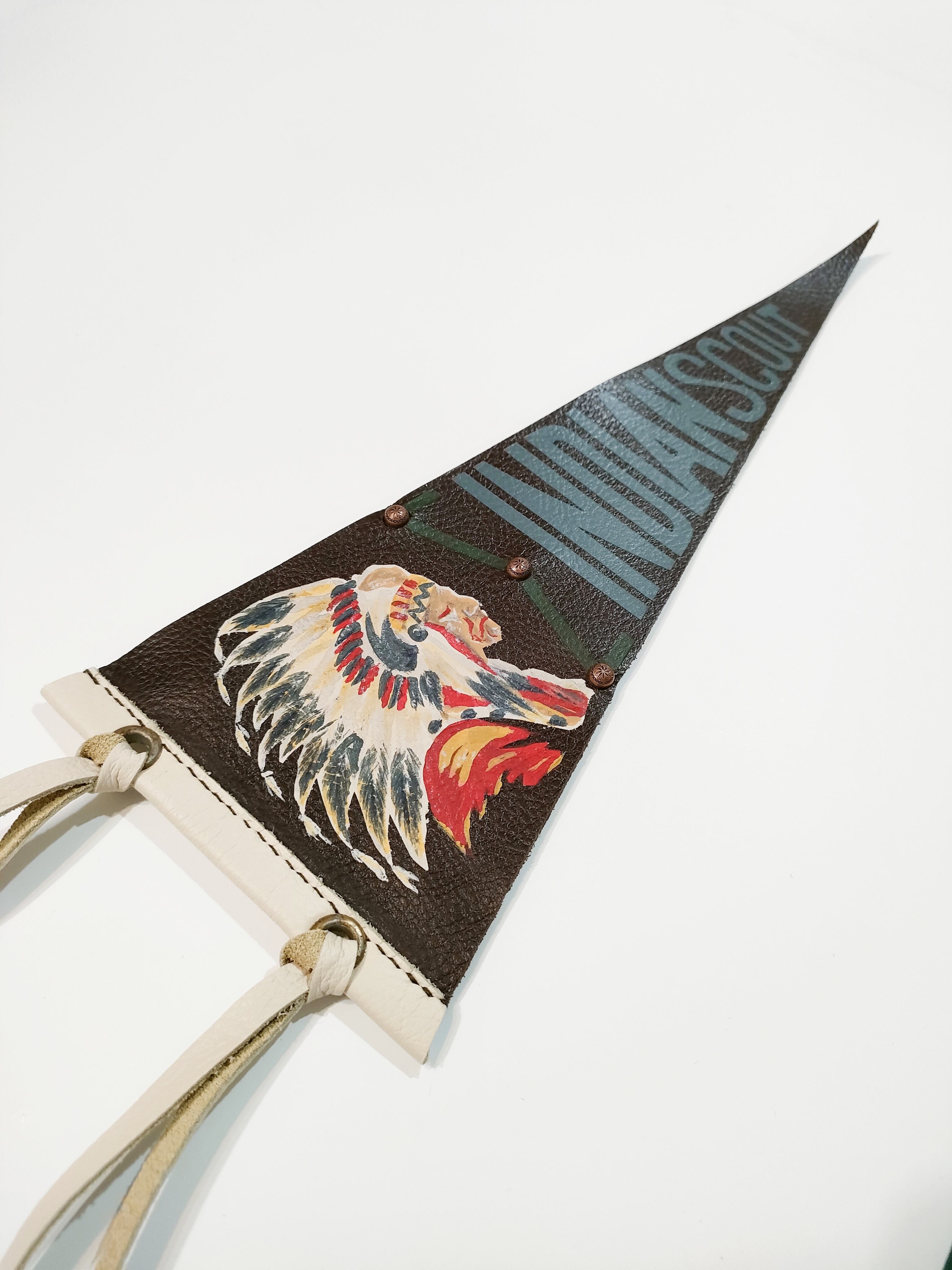 インディアンヘッドのハンドペイントが施されたレザーペナントです。
