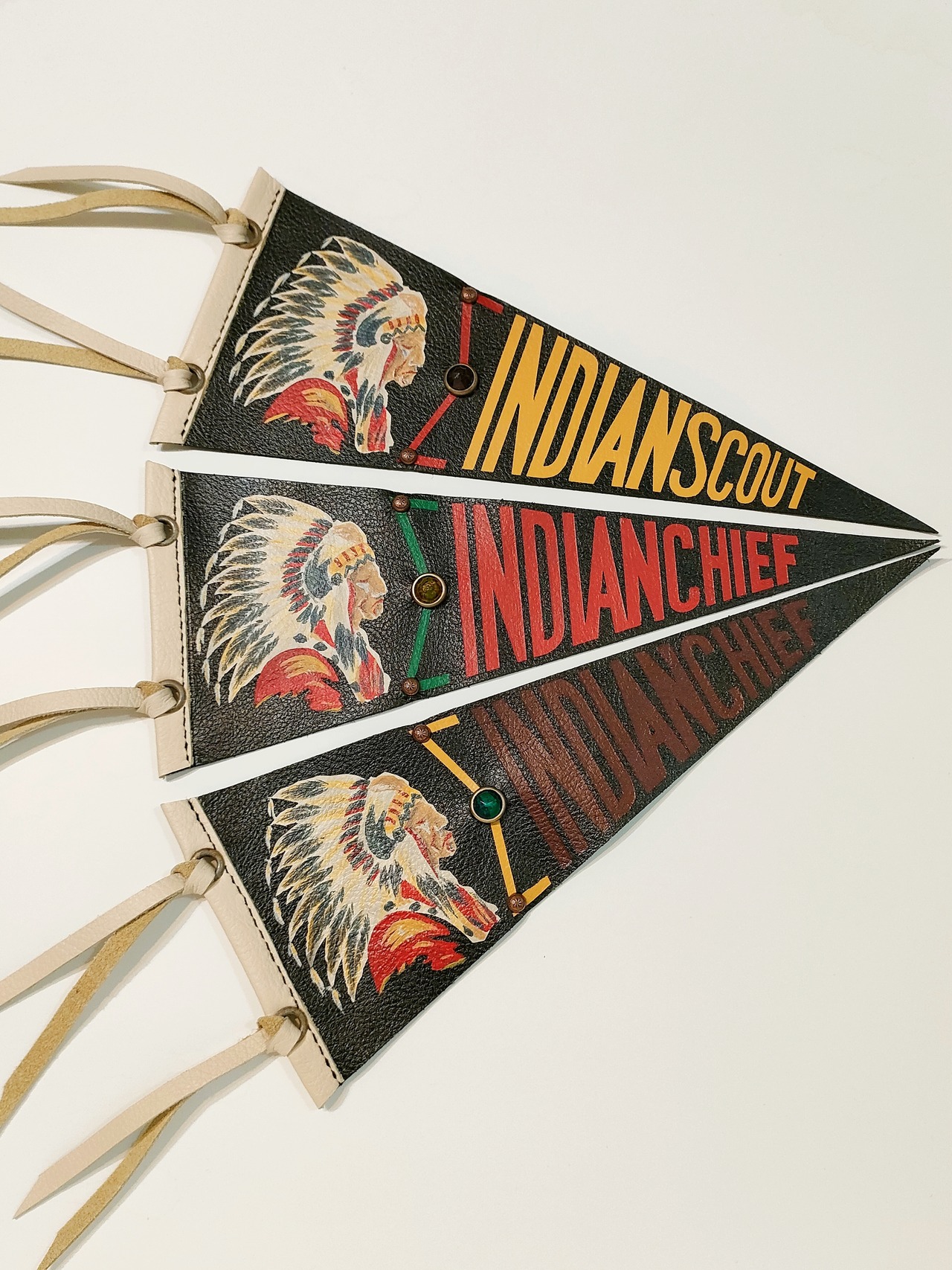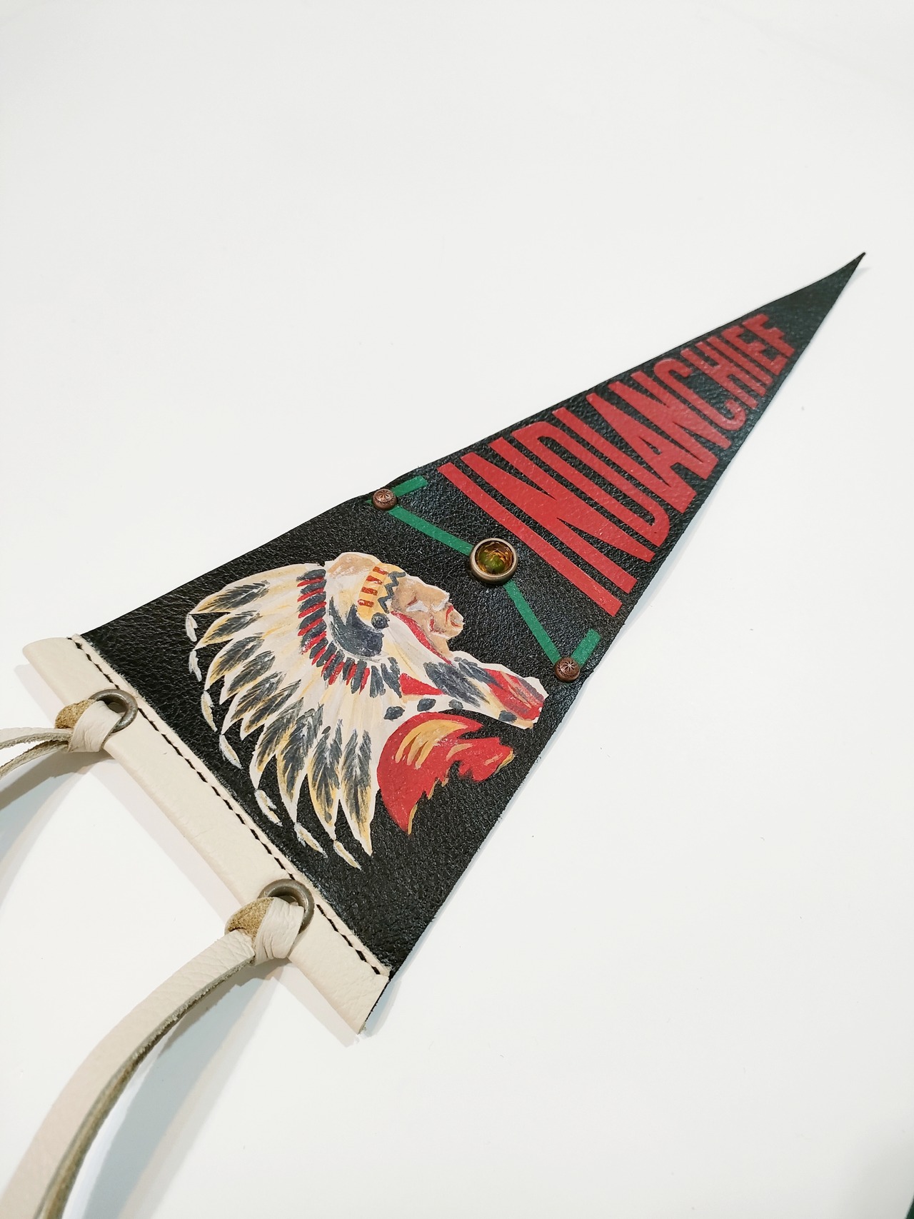 インディアンヘッドのハンドペイントが施されたレザーペナントです。