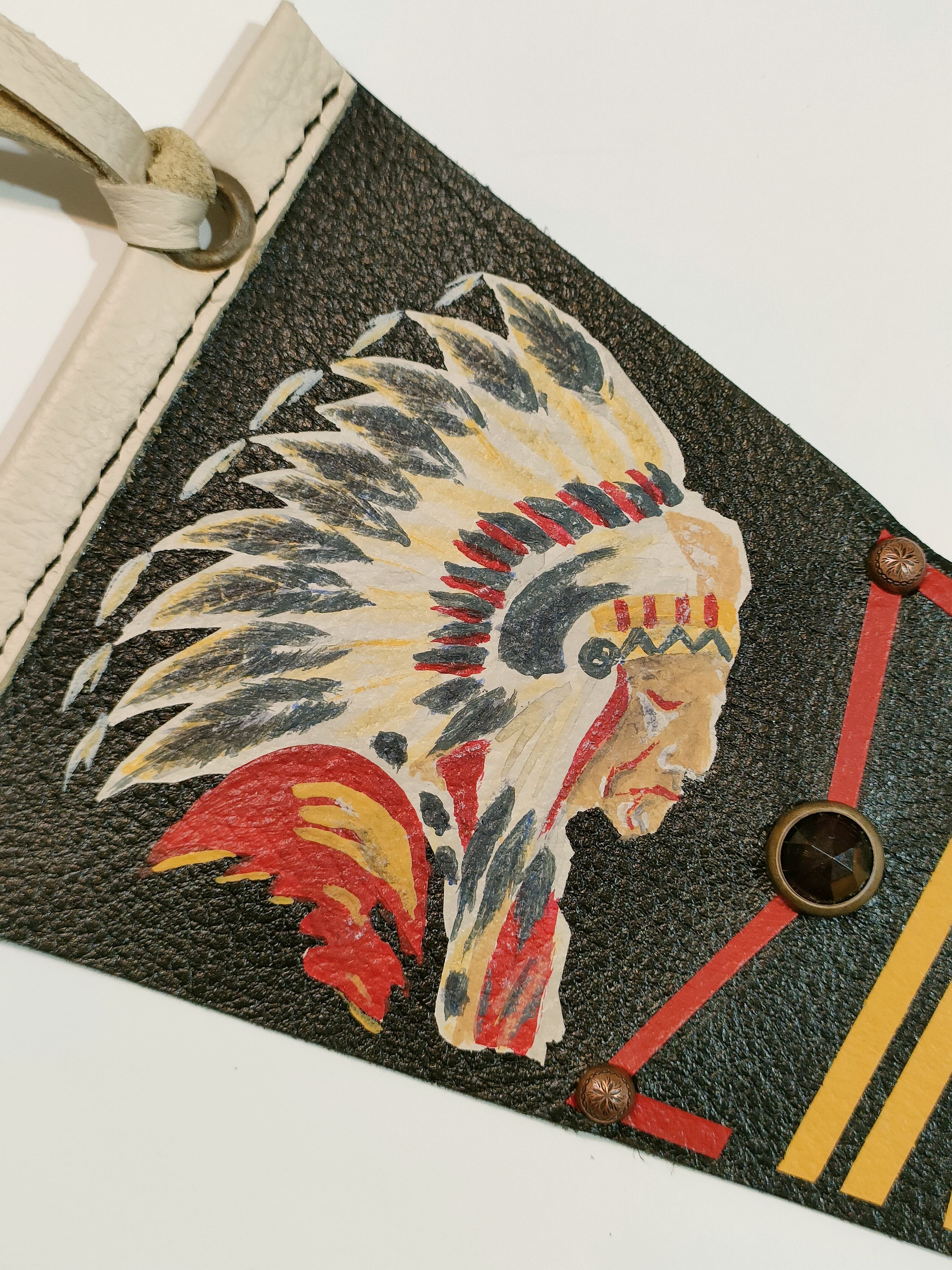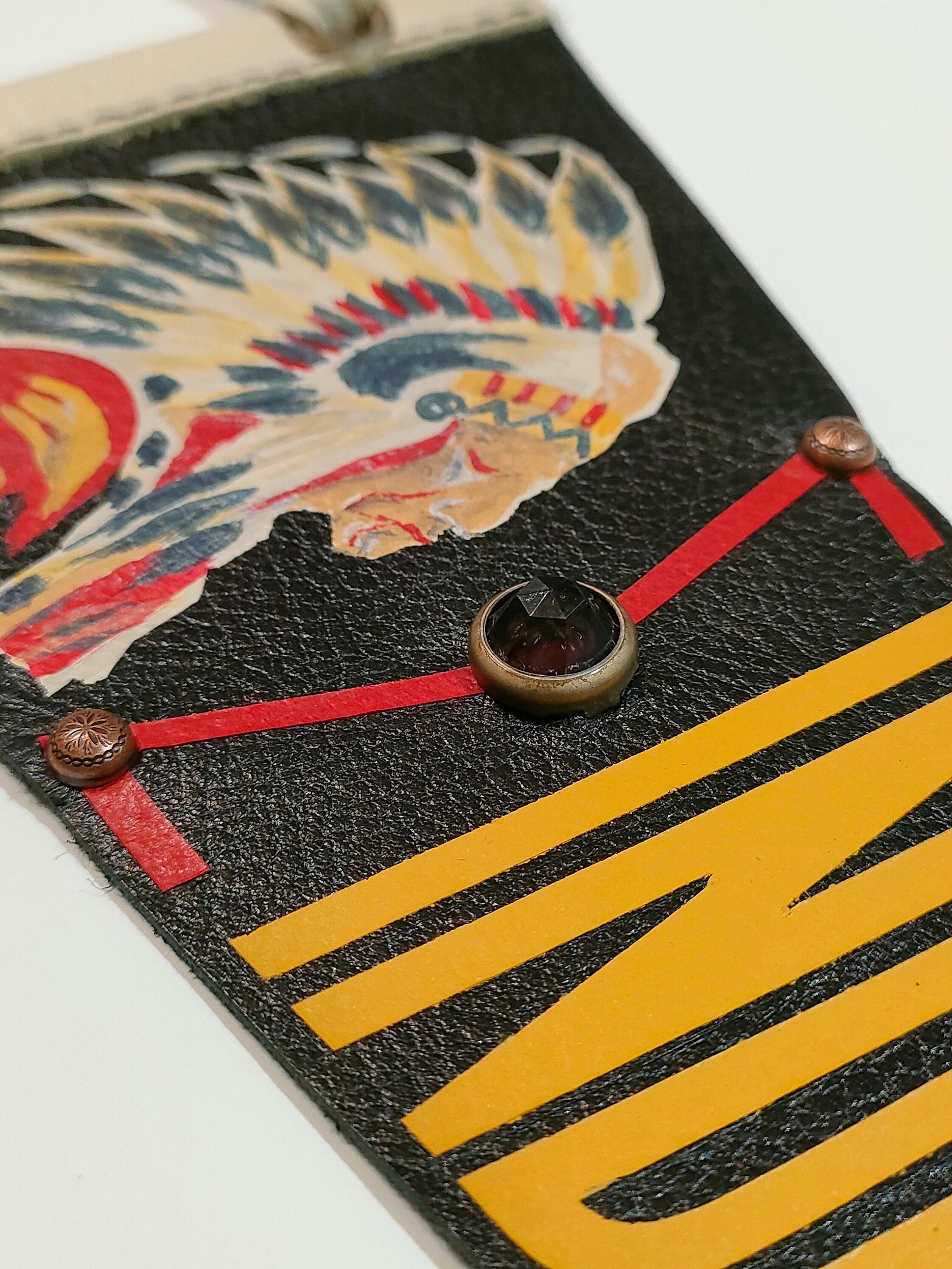 インディアンヘッドのハンドペイントが施されたレザーペナントです。